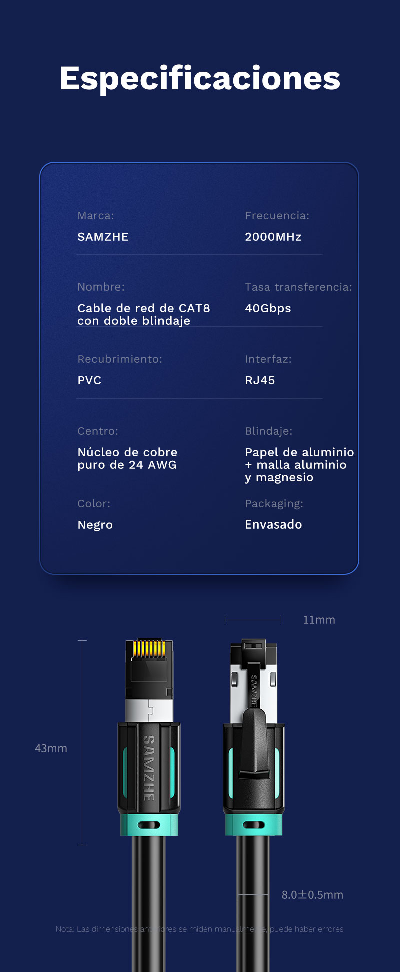Nombre: Cable de Red CA8 con Doble blindaje